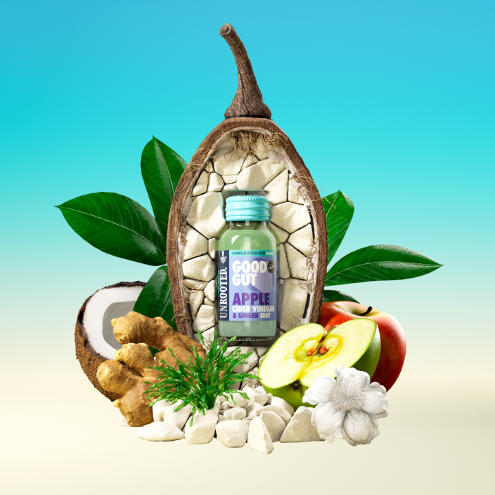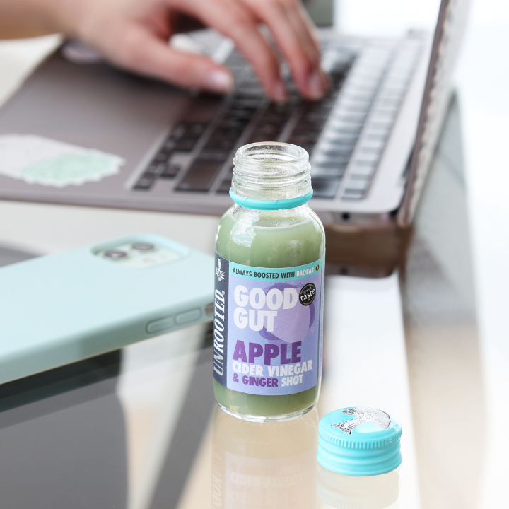 Your one stop shot for a good gut. Our award-winning shot combines high-in-fibre baobab with spirulina and apple cider vinegar to help aid digestion and support good gut health.