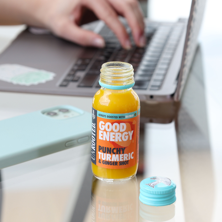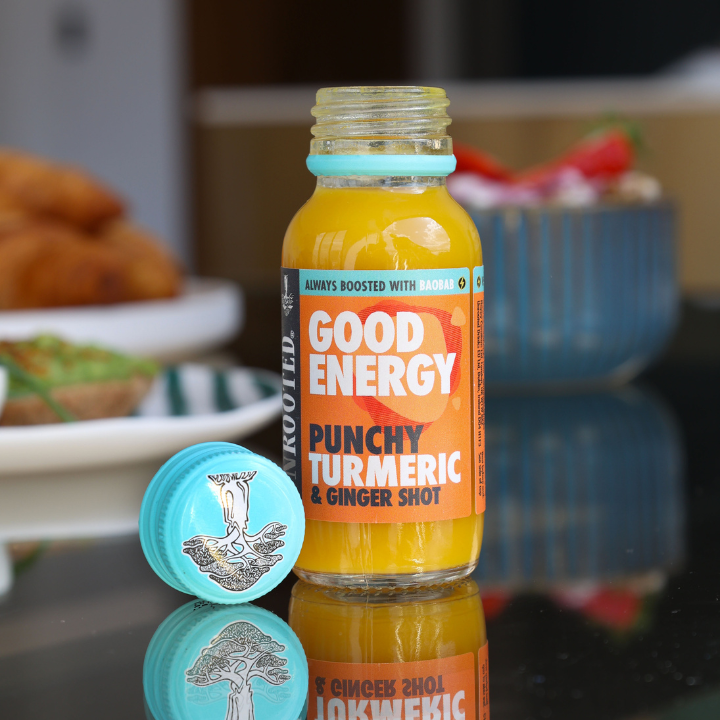 A punchy blend of turmeric, wild African baobab fruit and ginger creates a delicious shot that’s high in fibre, vitamin c and antioxidants, with an added anti-inflammatory boost.