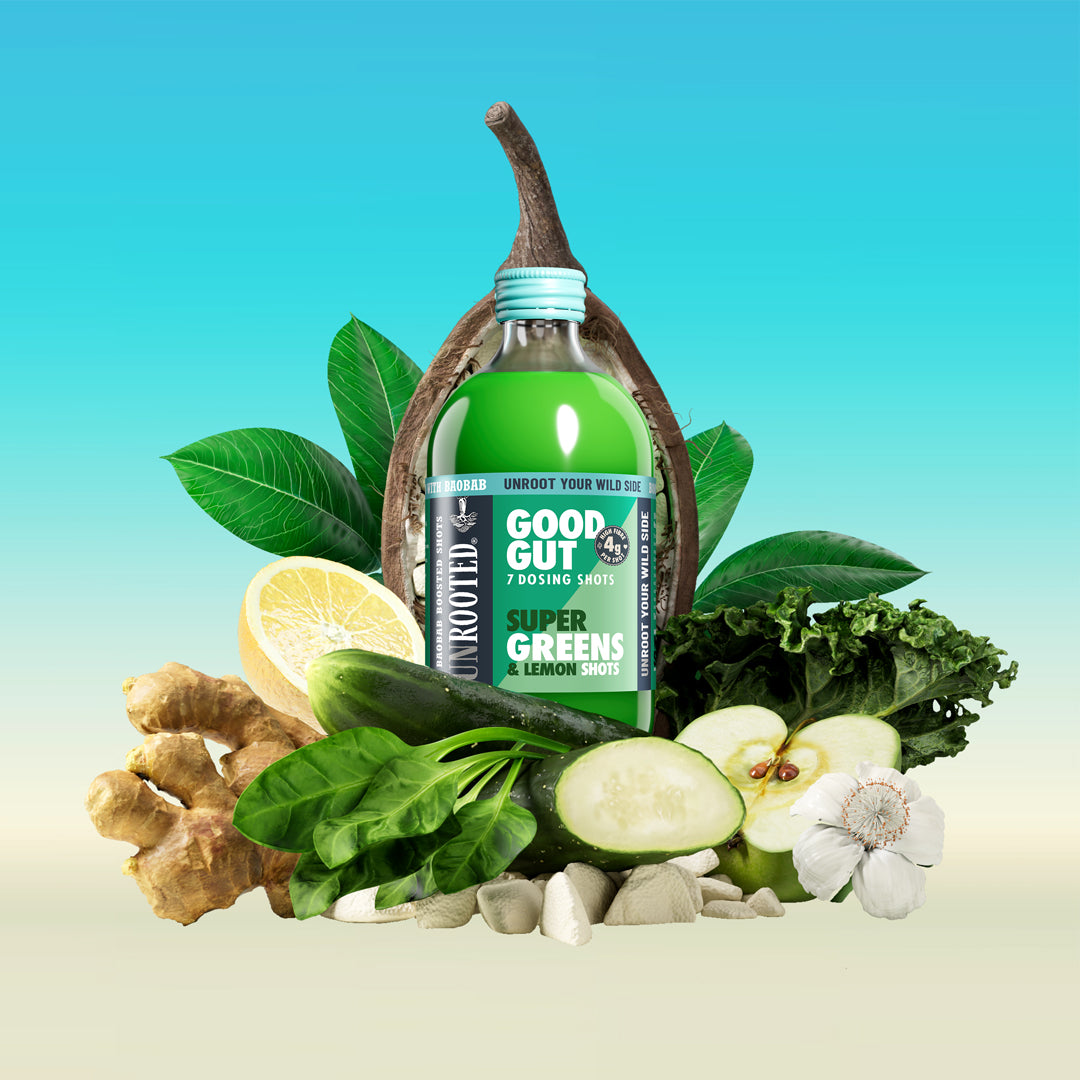 Your Good Gut game just got a whole lot greener! We've combined our star superfruit, the mighty wild baobab, with lemon and some serious super greens to bring you the ultimate green boost with a side of zest and 4.2g of fibre.